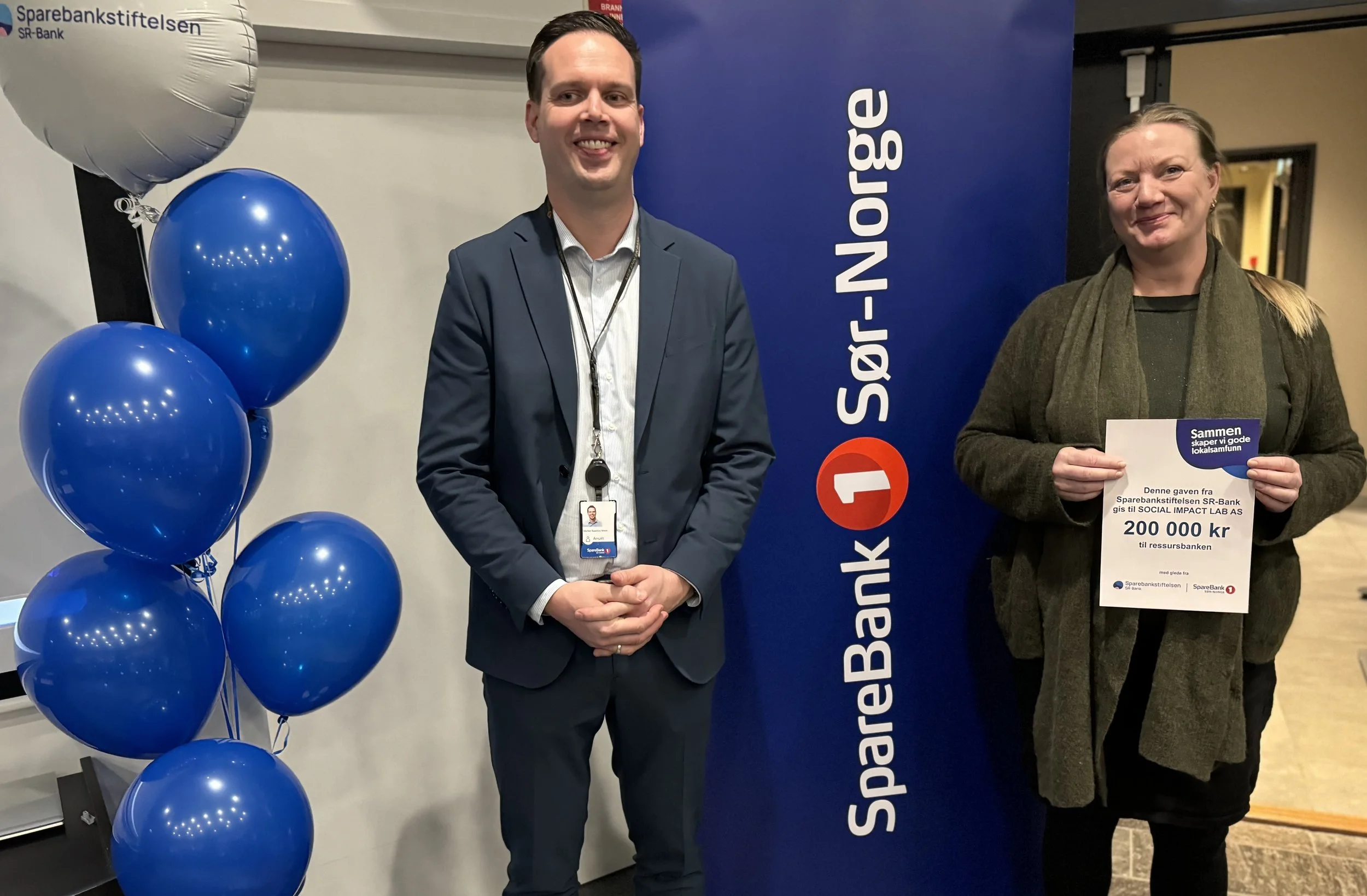 Fra utdelingen av prosjektstøtte hos Sparebank 1 Sør-Norge . Foto: Sparebankstiftelsen SR-Bank.