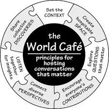 World Café er en metode for å fasilitere dialog i store grupper (f.eks. 40-60 personer) på en inkluderende og engasjerende måte. Deltakerne samles rundt småbord i en uformell «kafésetting» og samtaler i flere runder om spørsmål som er viktige for organisasjonen eller fellesskapet. Etter hver runde roterer deltakerne, og kunnskapen «pollineres» mellom bordene. Dette skaper rom for kollektiv innsikt, nye perspektiver og løsninger som eies av fellesskapet.